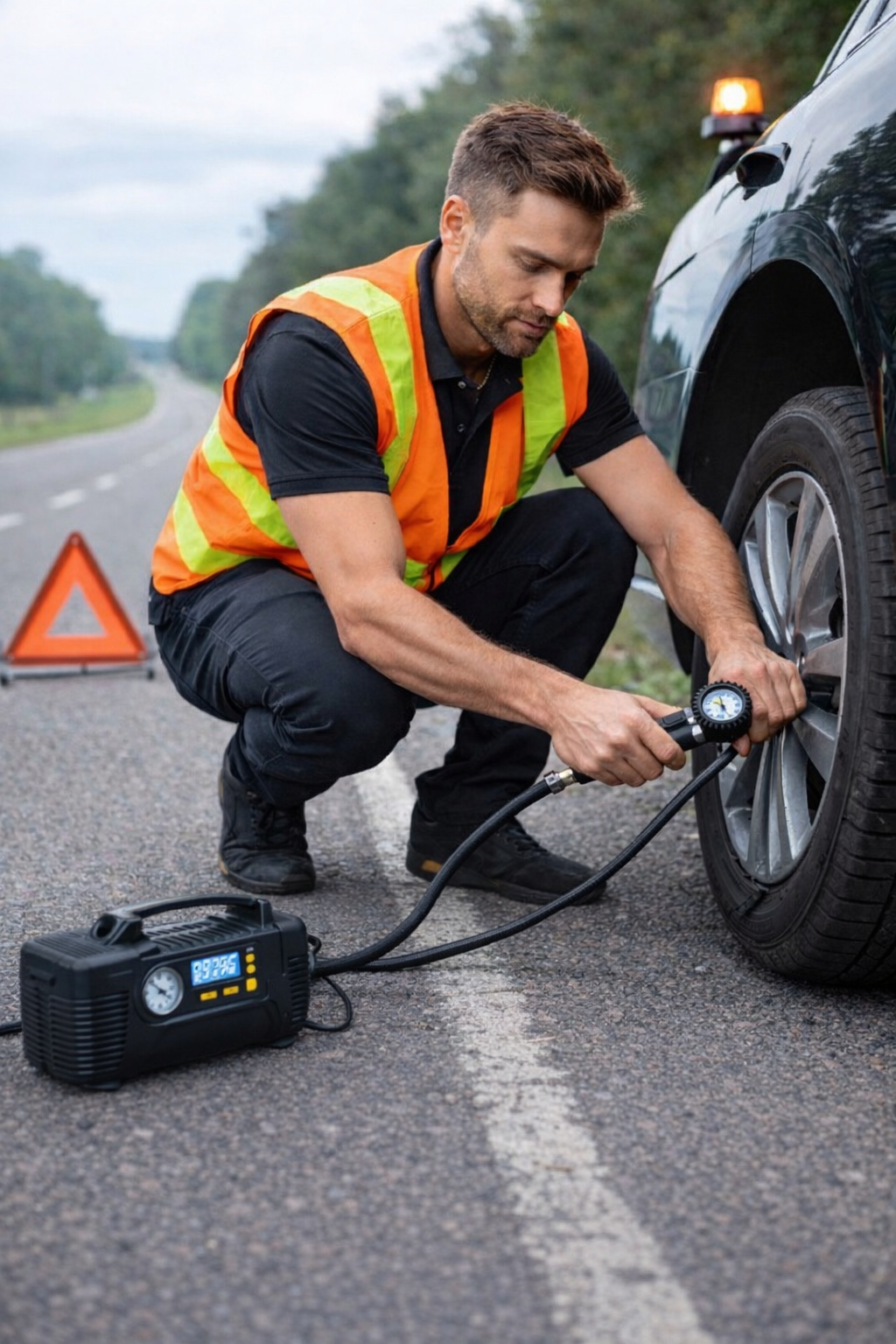Tyre replacement and emergency tyre inflation.